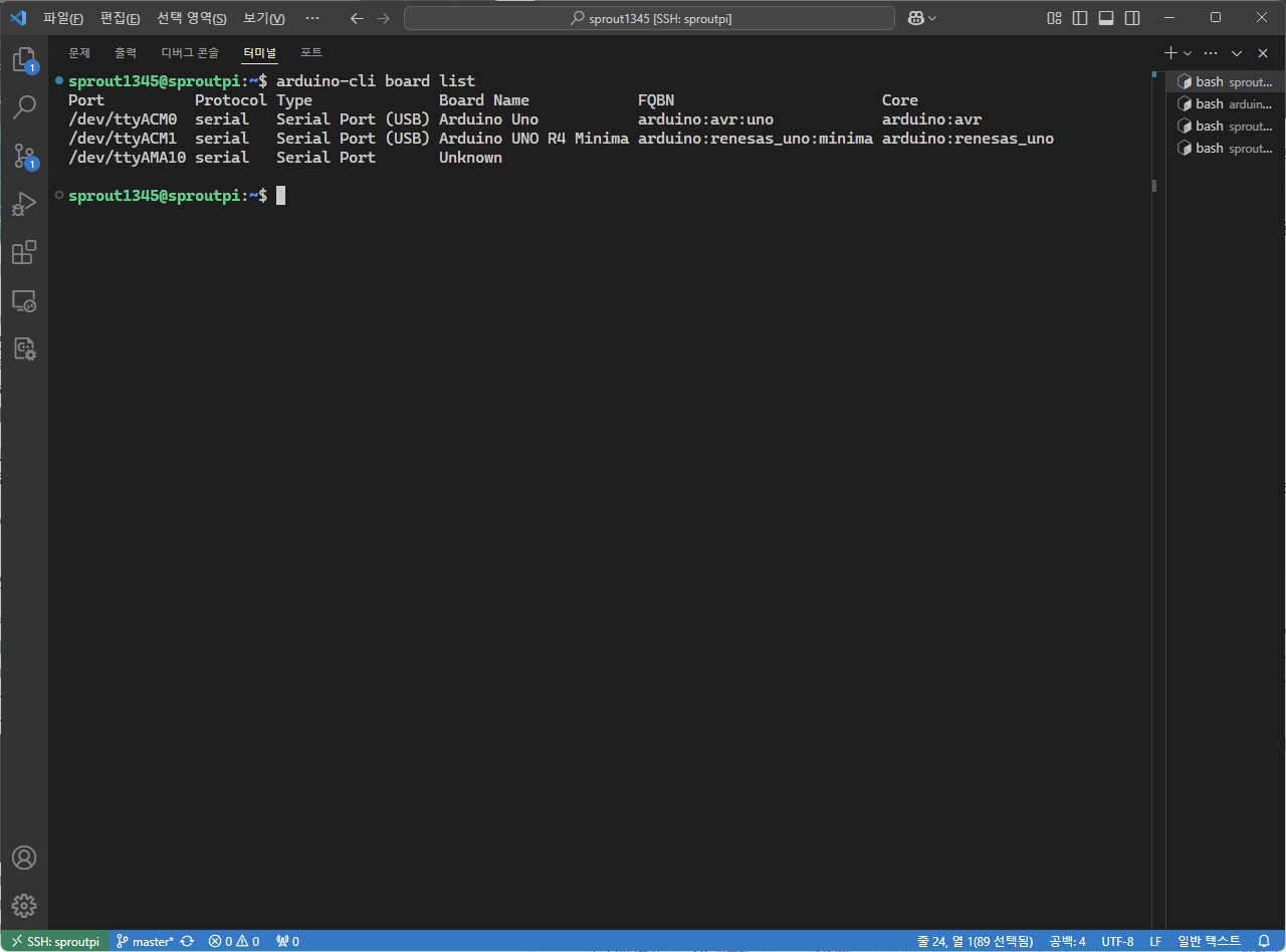 먼저 arduino-cli를 이용해 보드의 포트를 확인한다.