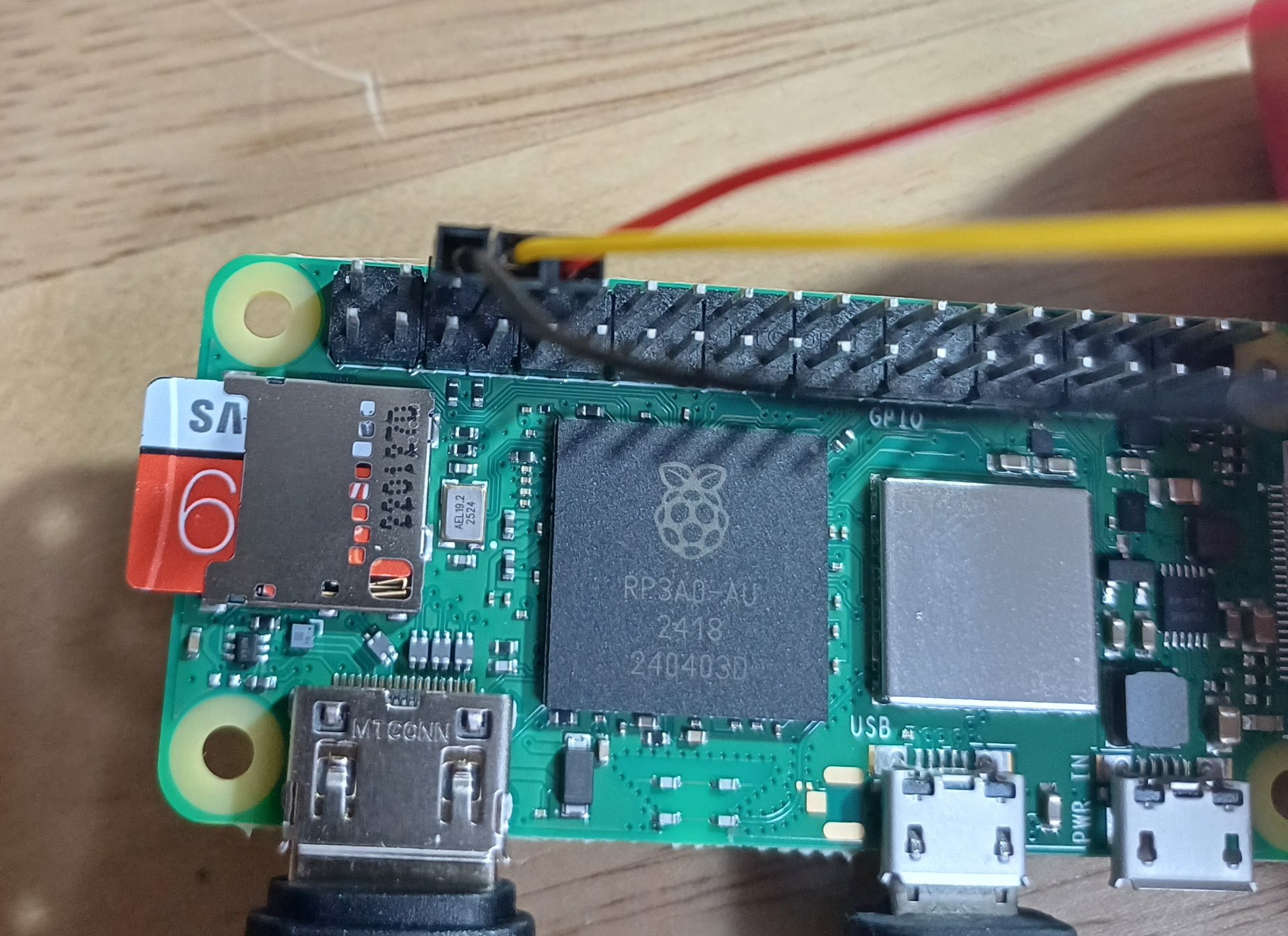 적색 선은 GPIO 14에, 황색 선은 GPIO 15에 연결하면 된다.