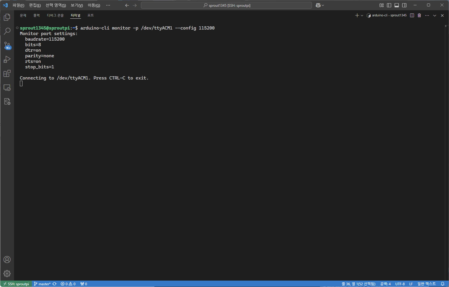 arduino-cli의 시리얼 모니터가 열린다.