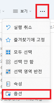 Windows 11에서는 '...' > '옵션'으로 들어간다.