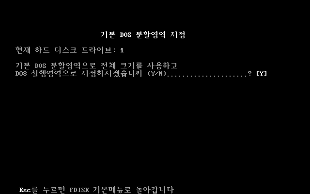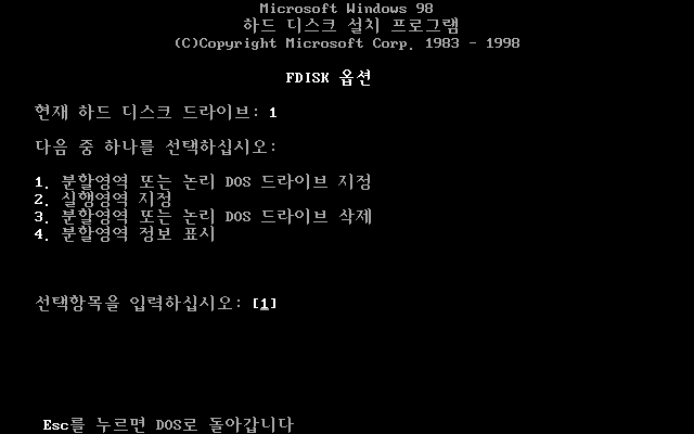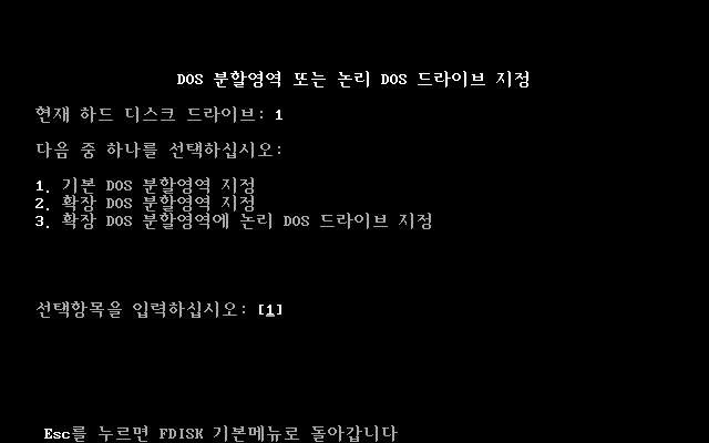 5) '1'을 선택하여 논리 DOS 드라이브를 지정한다.
