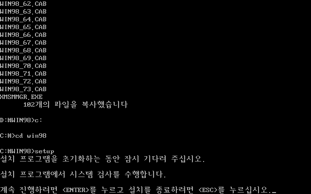 이후 'SETUP'을 입력하여 SETUP.EXE를 실행한다.