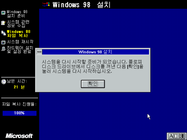 기본적으로 win98(경우에 따라서는 다른 9x)의 경우 설치 CD를 이용하여 클린 설치하면 오류가 발생하는 경우가 있다.