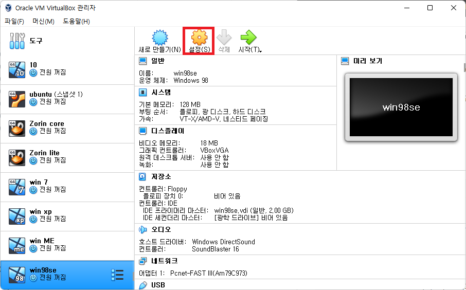 아래는 Windows 98을 예시로 한 설치 가이드이다.