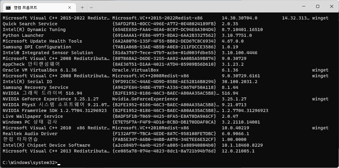 winget show "[프로그램명 / 장치 ID]"