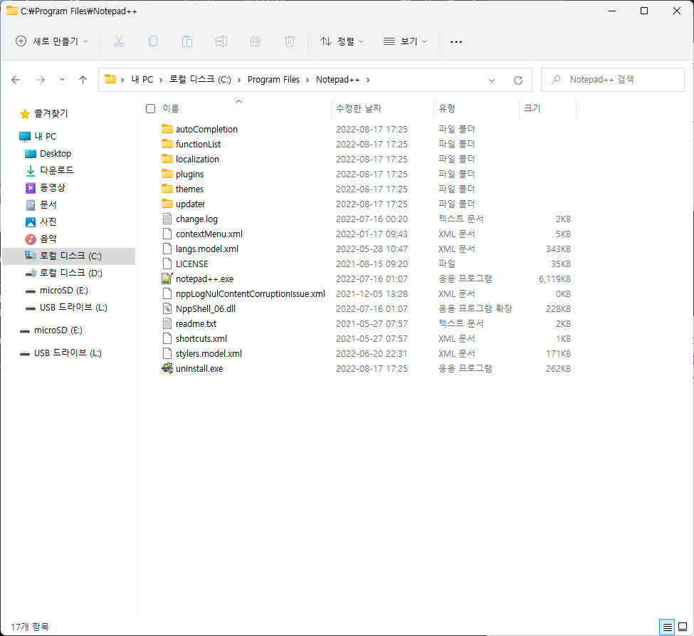 방금 설치한 notepad++을 삭제해보자