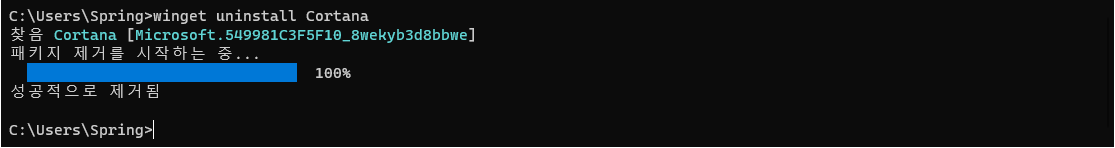 Winget을 이용하여 Cotana와 같은 Windows 기본 탑재 앱을 제거할 수 있다.
