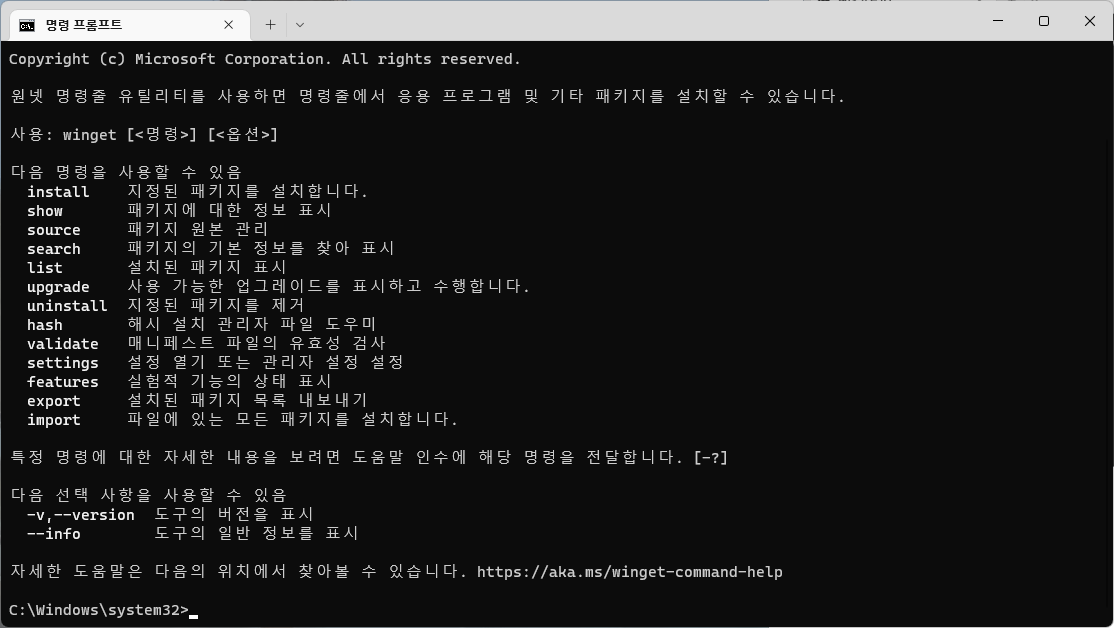 https://docs.microsoft.com/ko-kr/windows/package-manager/winget/
