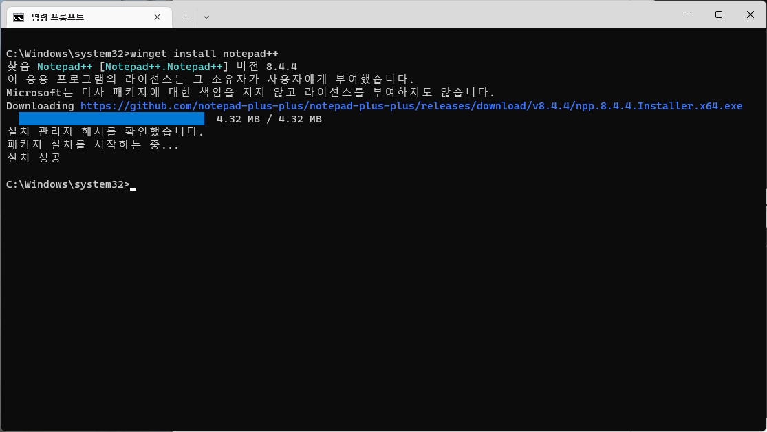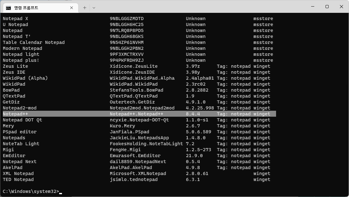 표시되는 목록 중에서 'notepad++'를 설치해보도록 하자.