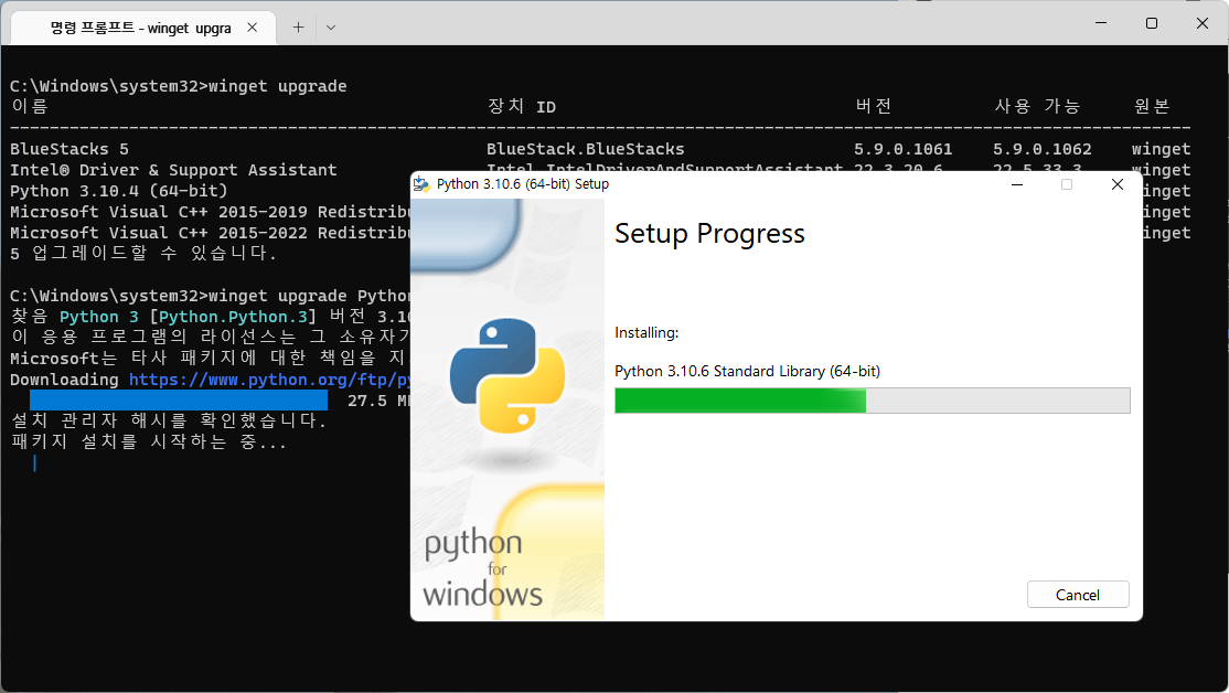 여기서는 Python을 업그레이드(업데이트) 해보자.