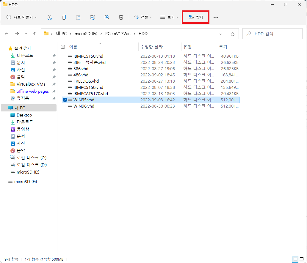 .vhd확장자를 가진 가상 하드 디스크 파일을 예로 들어 설명한다.