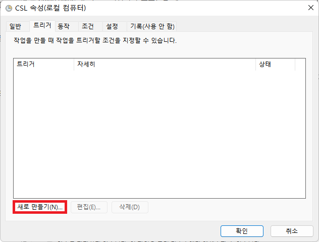 트리거 탭으로 이동하여 '새로 만들기'를 눌러 새로운 트리거를 생성해준다.