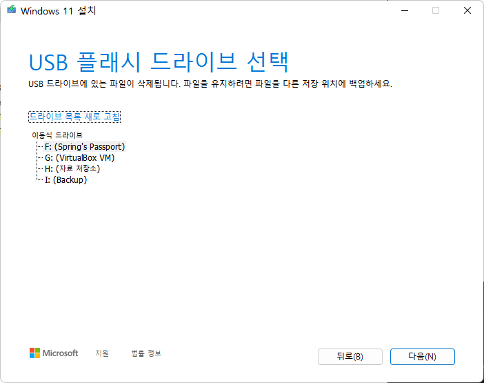여분의 USB가 존재한다면 USB 드라이브를 제작하는 것이 좋다.