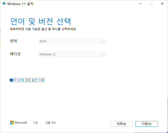 '이 PC에 권장 옵션 사용' 옵션을 해제하면 범용 PC 미디어를 만들 수 있지만 Windows 11 이후에는 그리 큰 의미가 없다.
