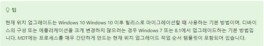 Windows에서 말하는 현재 위치 업그레이드는 기존의 Windows에서 더 높은 버전의 Windows로 업그레이드할 때 이용되는 방법이다.