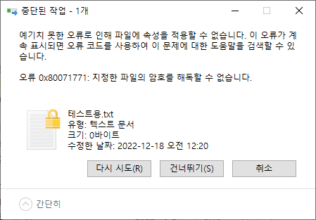 Windows 에디션이나 버전, 파일 시스템에 따라 EFS가 불가능할 수도 있다.