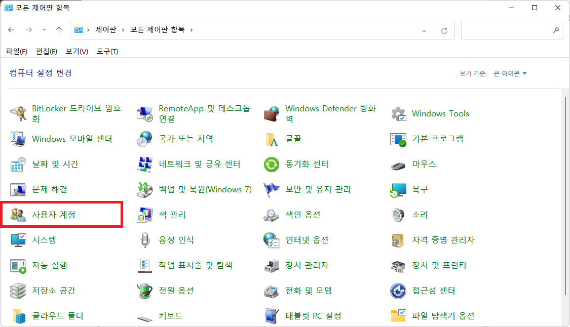 '제어판 > 사용자 계정'으로 진입한다.