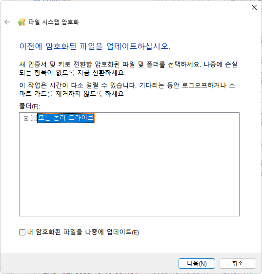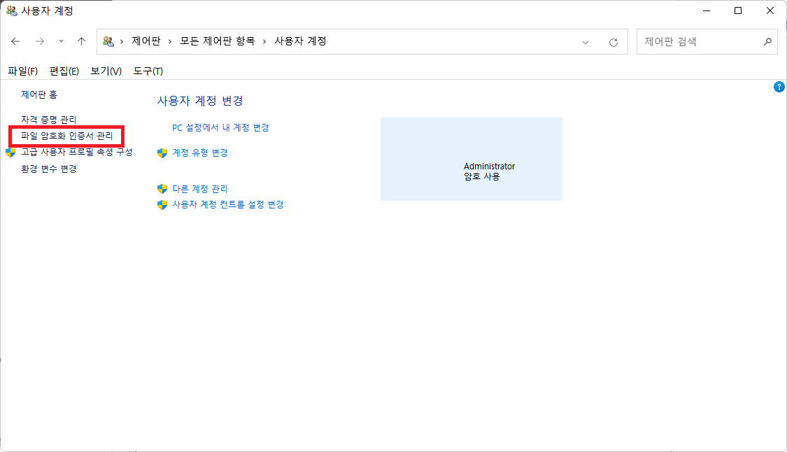 '파일 암호화 인증서 관리'를 클릭한다.