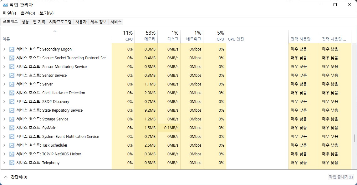 이러한 서비스들은 'svchost.exe'가 담당하는 '서비스 호스트'와 그 외 서비스 등록이 가능한 프로그램으로 구성된다.