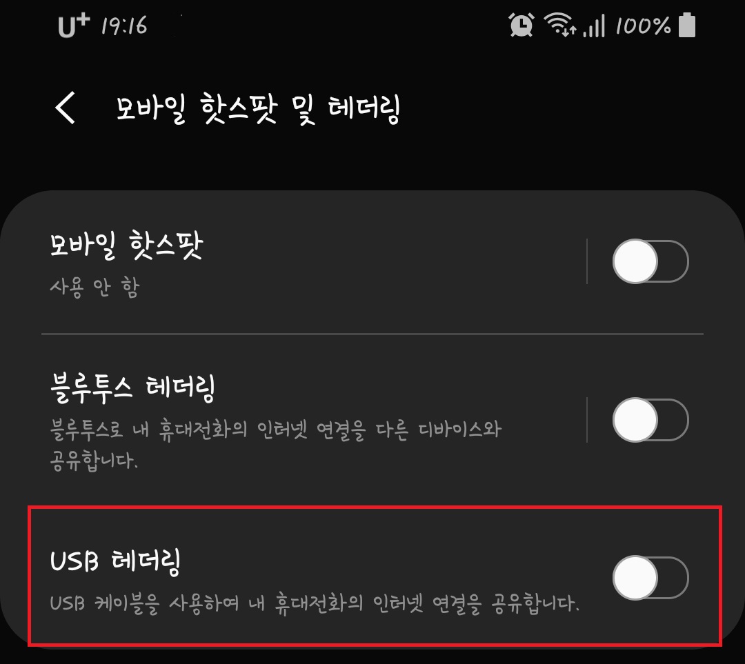 그리하여 이번 글에서는 USB연결을 통해 테더링을 하는 법을 알아보도록 하자.