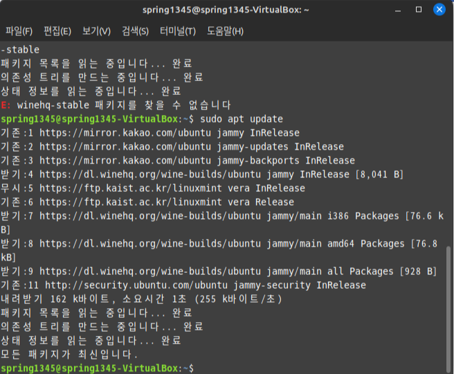 위의 코드는 의존성 업데이트이다. 이를 하지 않으면 패키지를 찾지 못하여 설치 진행이 불가능하다.
