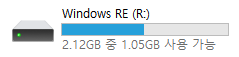 모든 설정이 정상인 것을 확인하였다면 Windows RE로 부팅되는지를 확인한다.