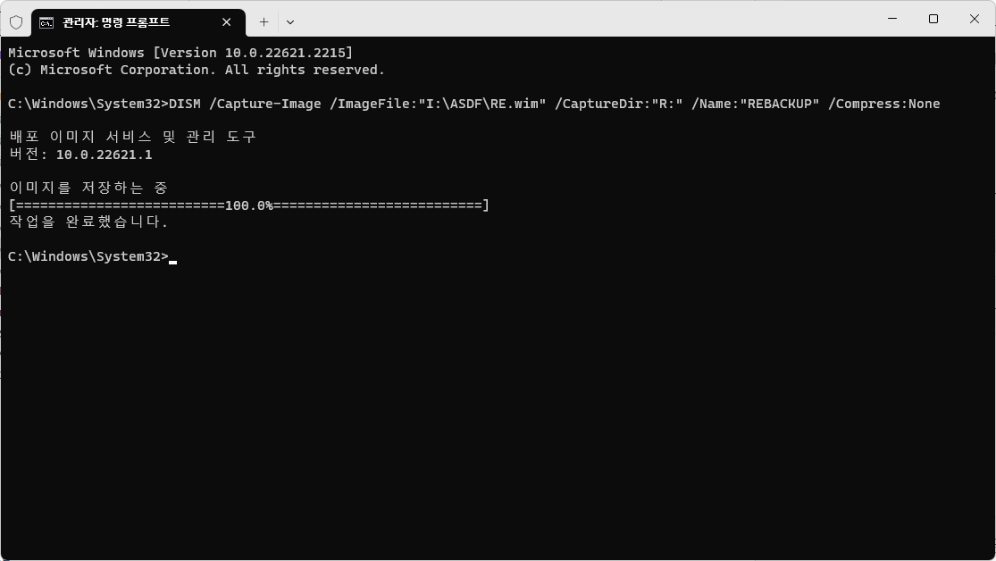 아무튼, DISM을 이용해 파티션을 캡처해야 한다.