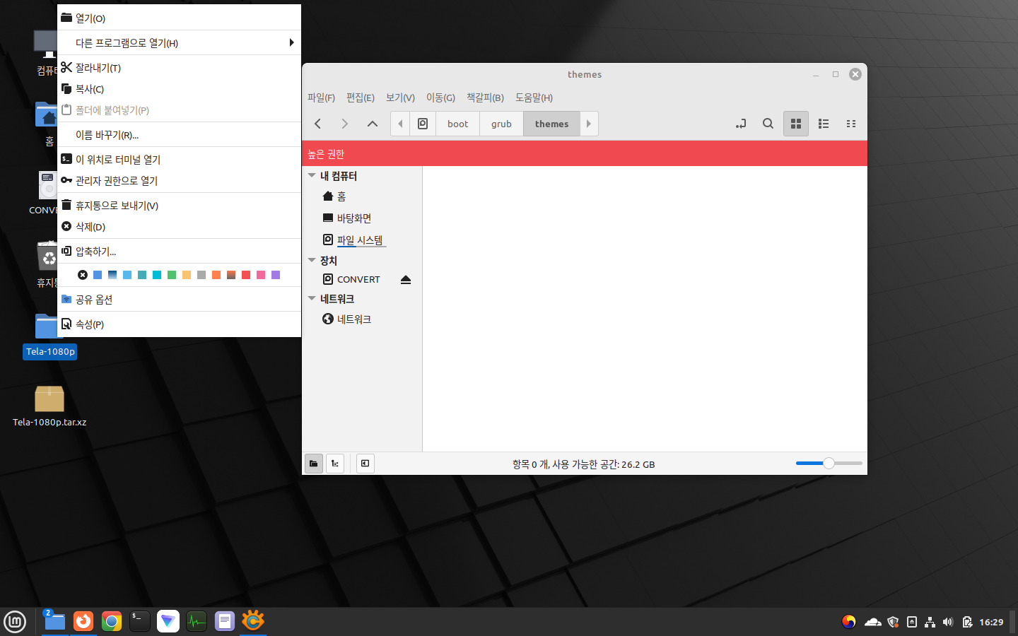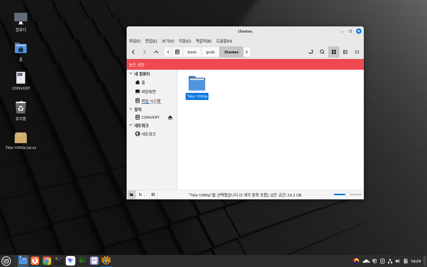 상술하였듯, 이 글에서는 Linux Mint에서 Tela grub theme를 적용할 것이다.