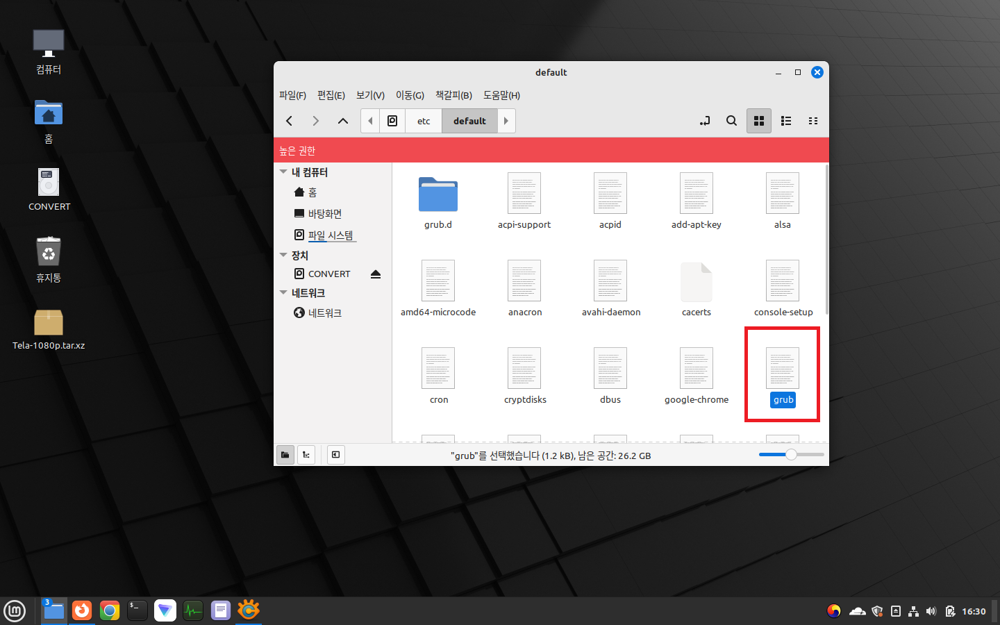 파일을 제대로 위치시켰으면 GRUB 설정을 수정할 차례이다.