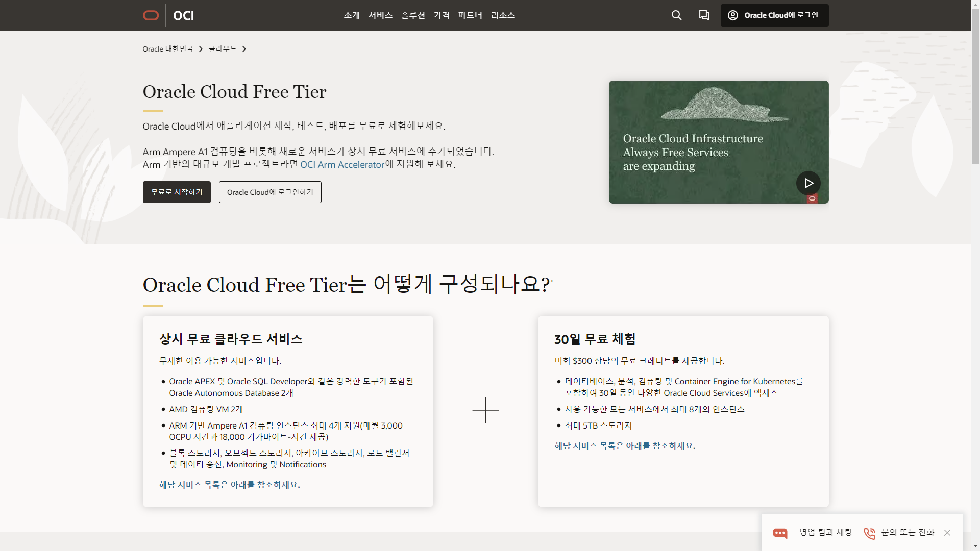다른 클라우드 서비스와는 달리, Free 티어 VM인스턴스를 평생 무료로 제공하는 정책을 펼치고 있다.