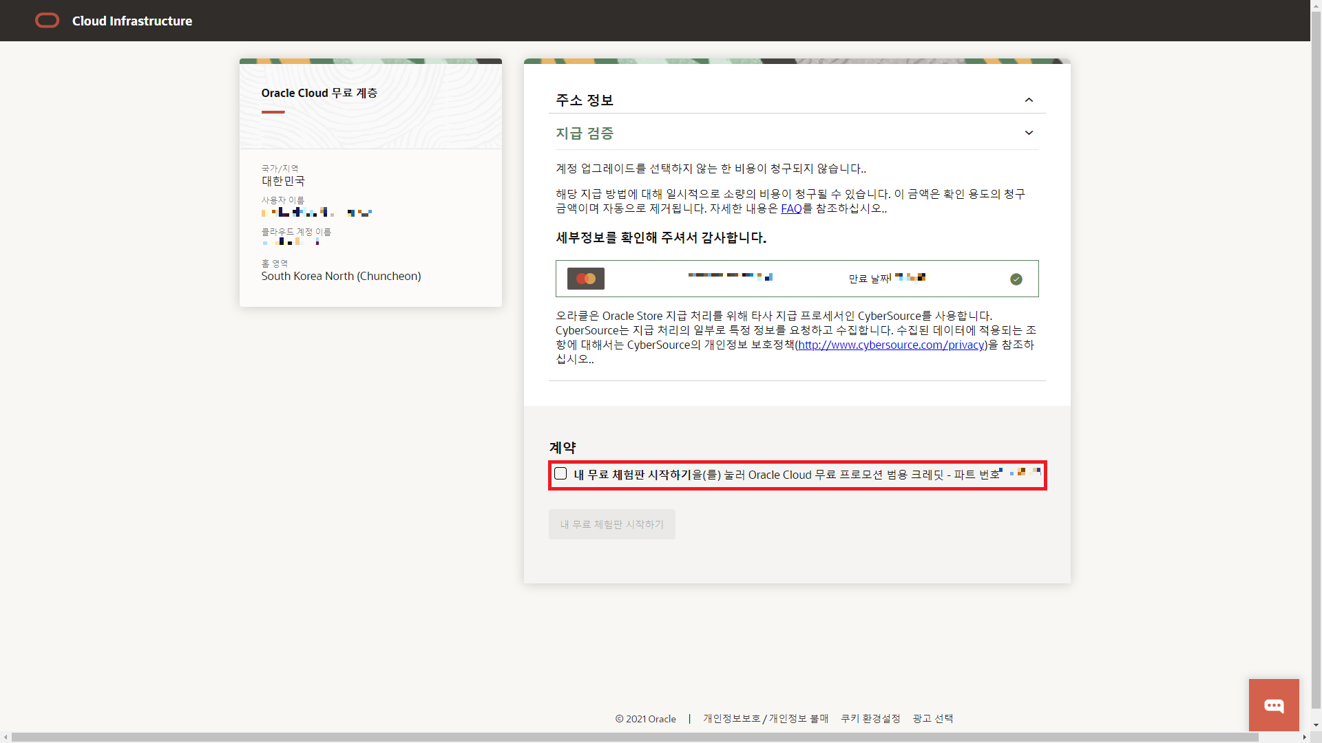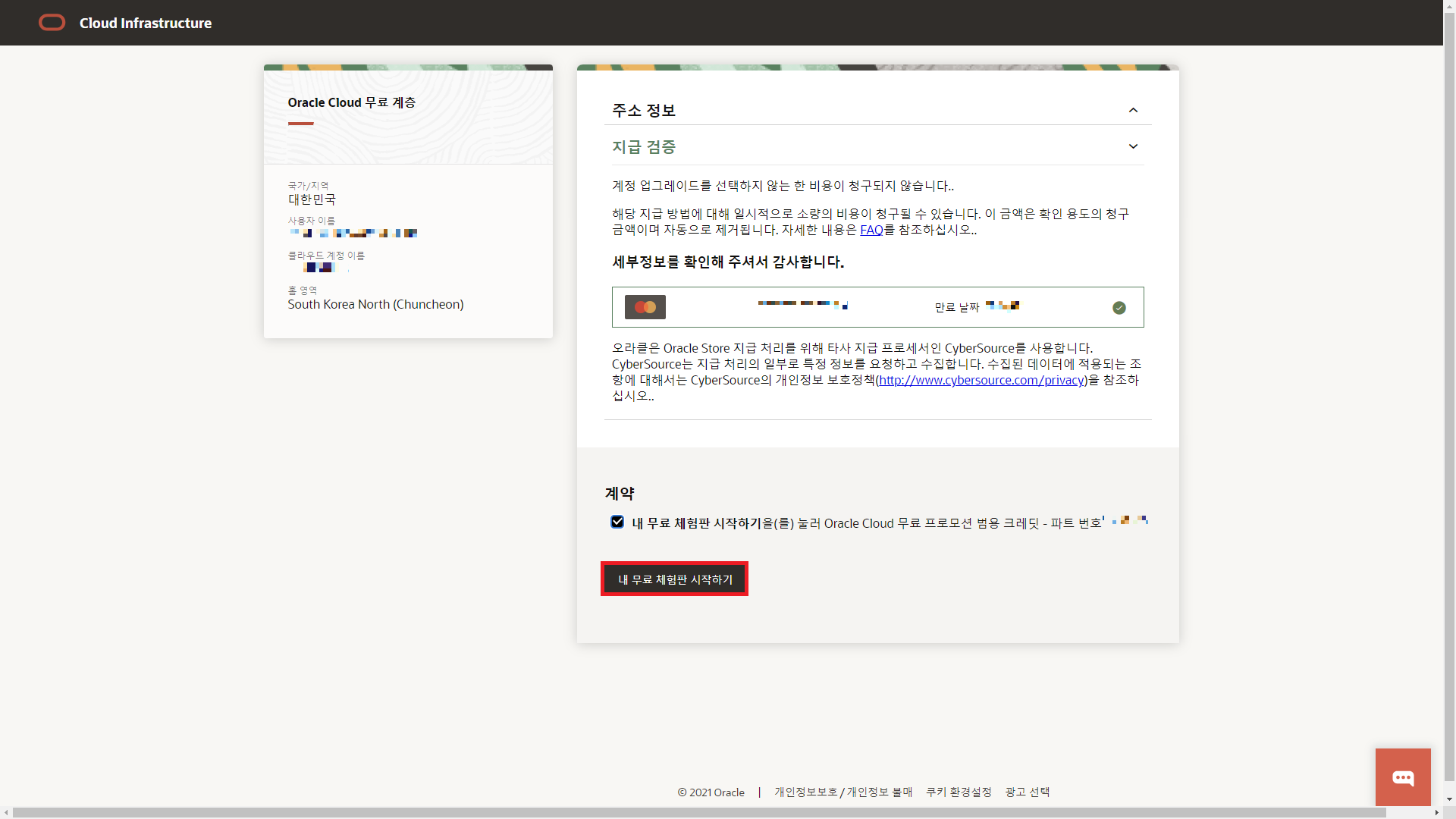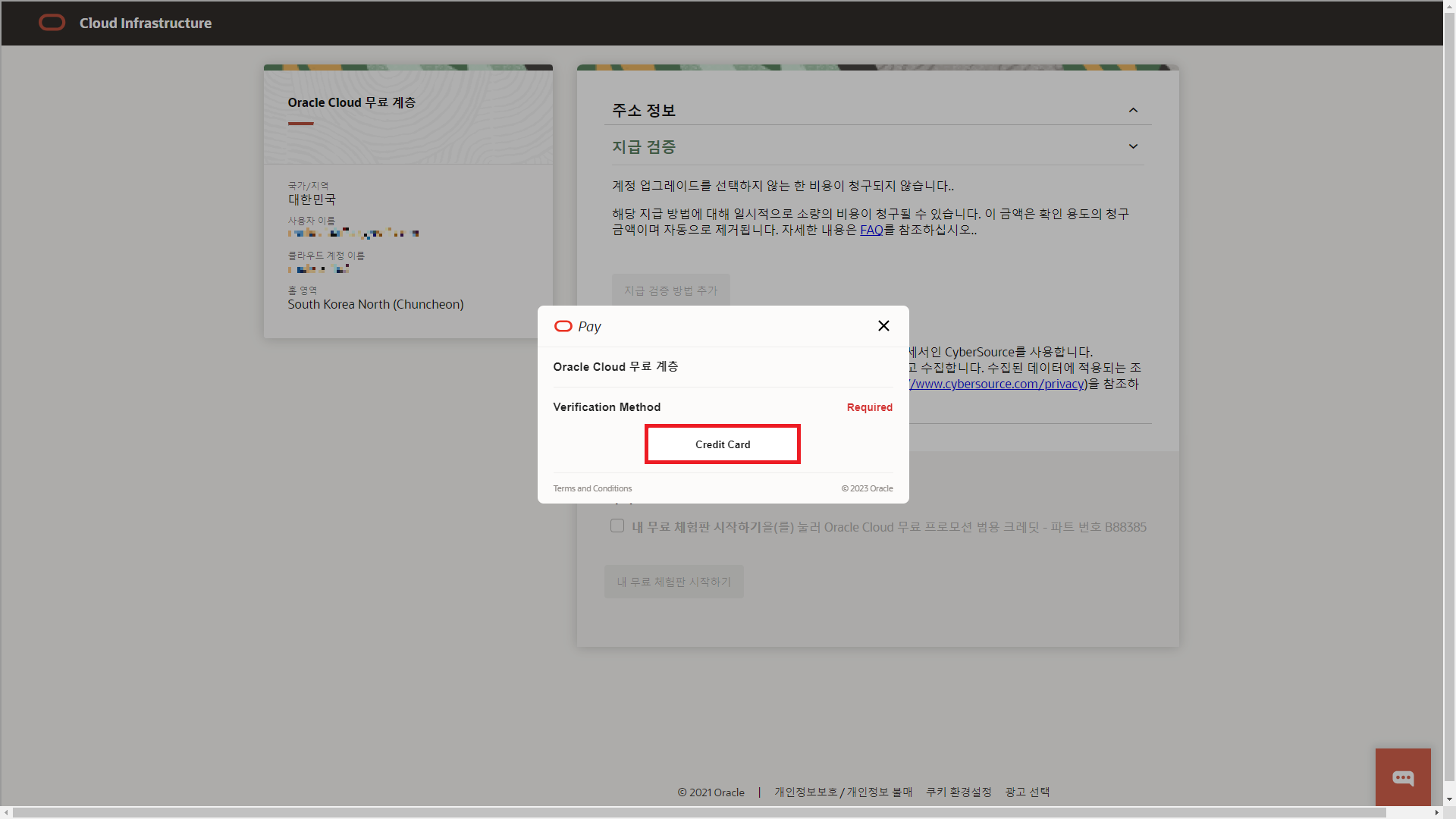 Oracle Cloud를 이용하기 위해서는 결제 가능한 카드가 필요하다. 신용카드인지 체크카드인지 여부는 상관없다.
