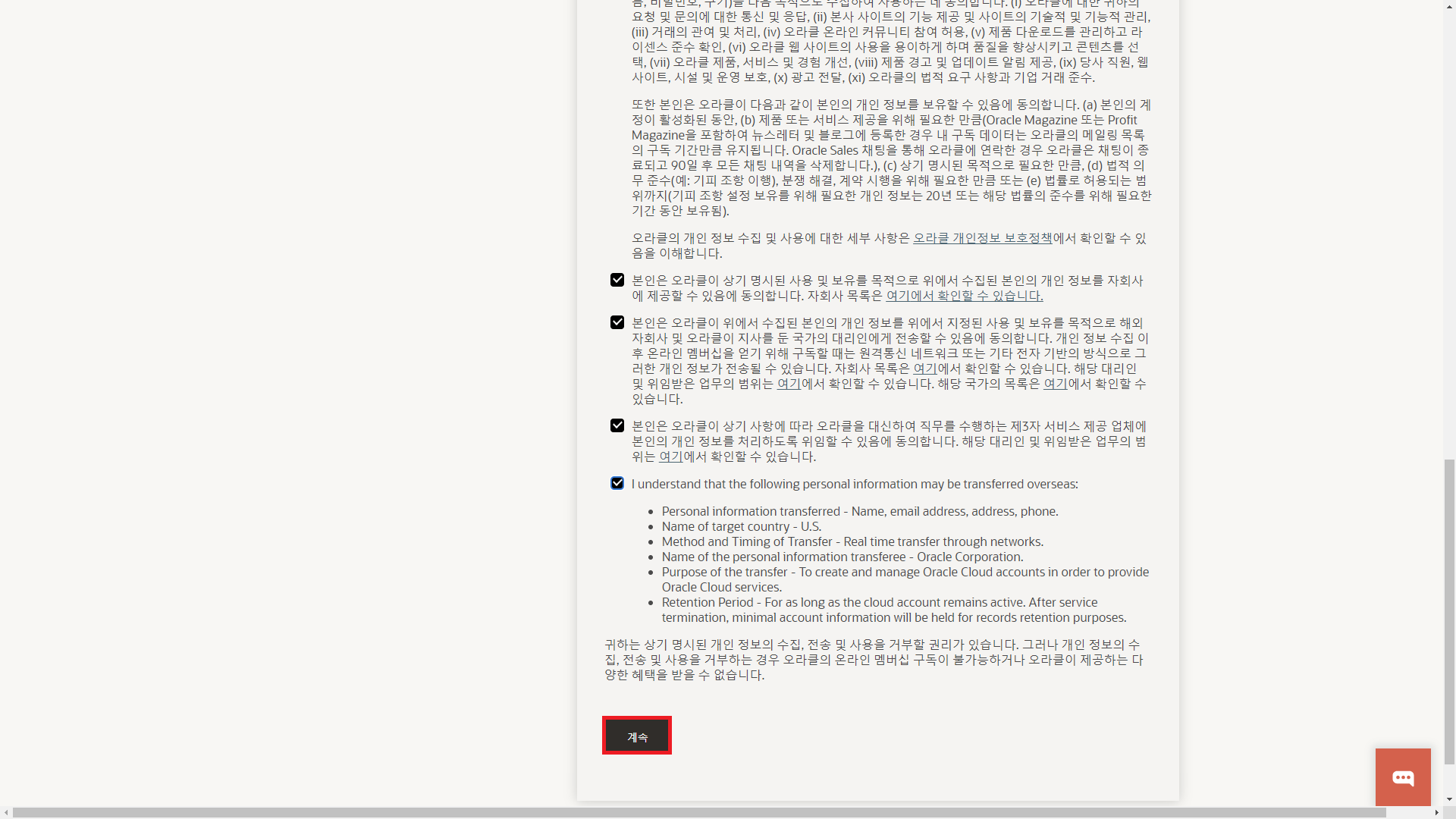 이후 아래로 화면을 내려 약관에 동의하고 [계속]을 누른다.