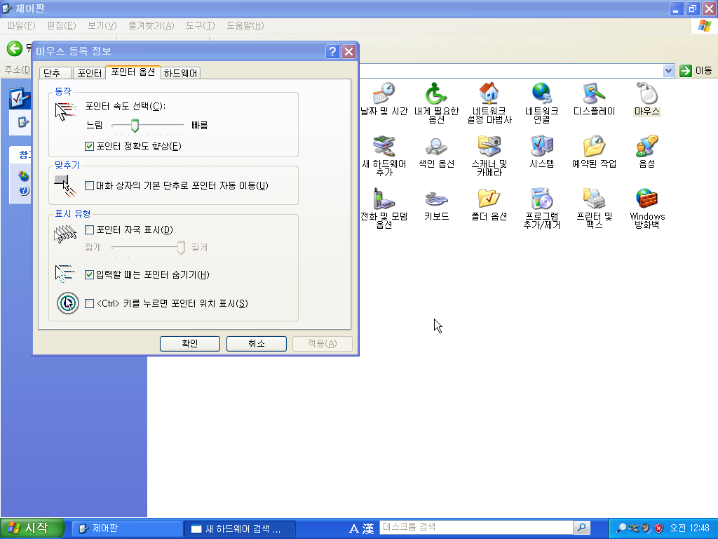 '마우스 속성'을 연다.