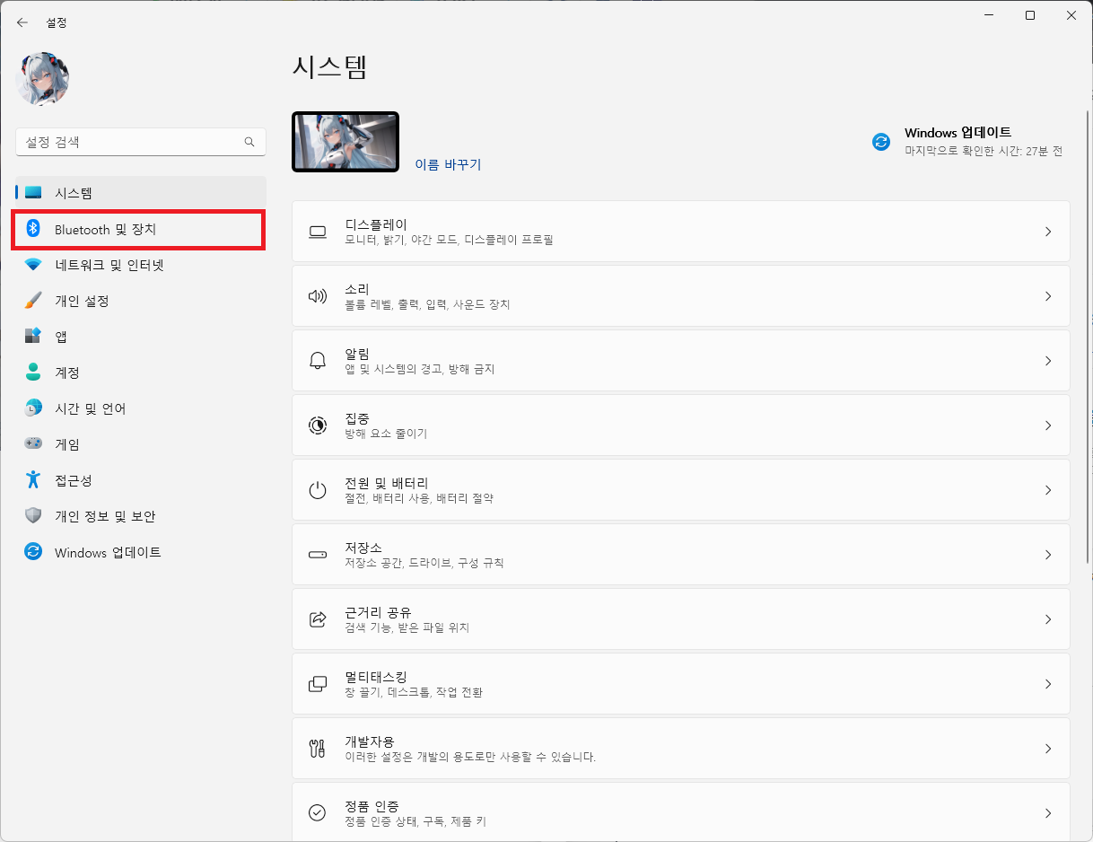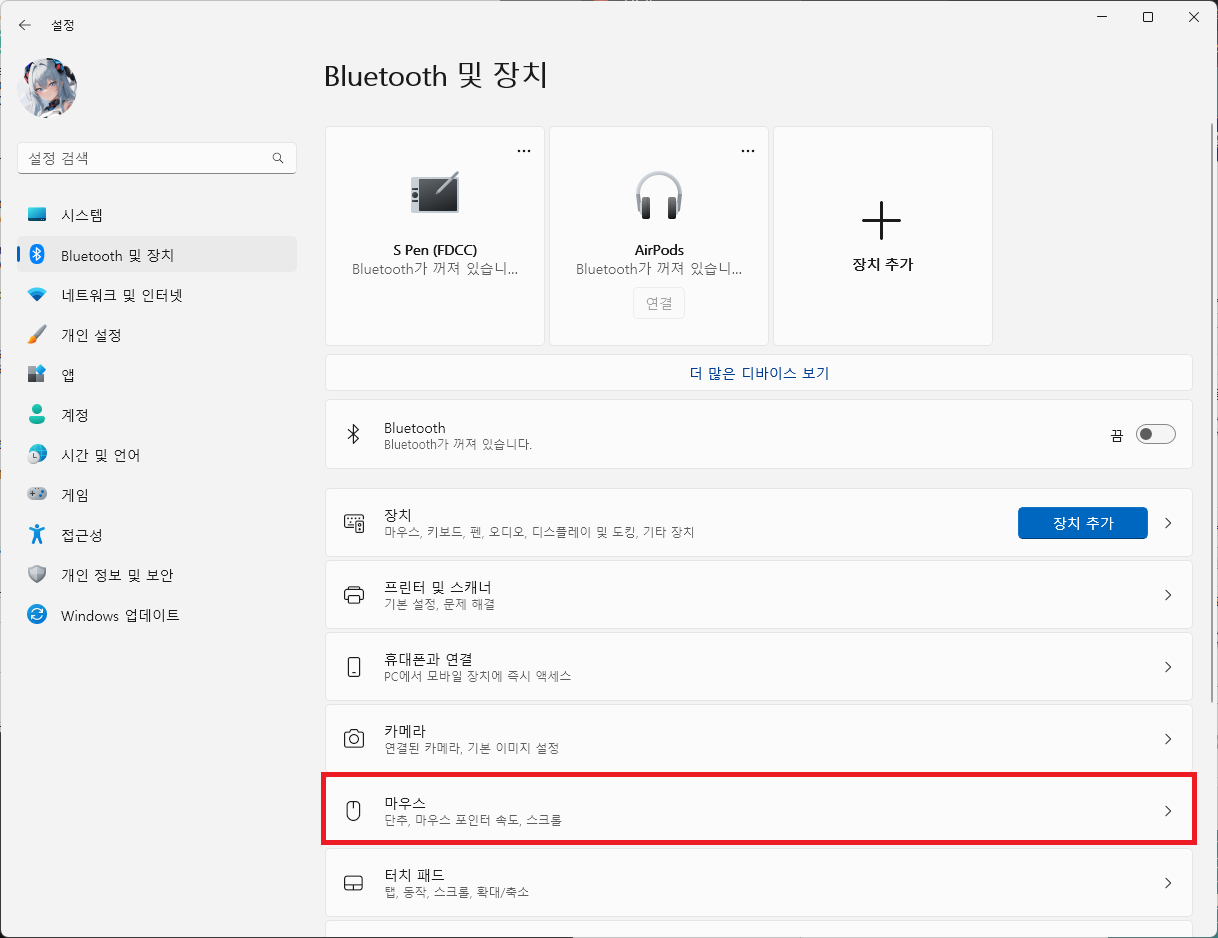 설정에서 [Bluetooth 및 장치 > 마우스 > 더 많은 마우스 설정]을 누르거나,