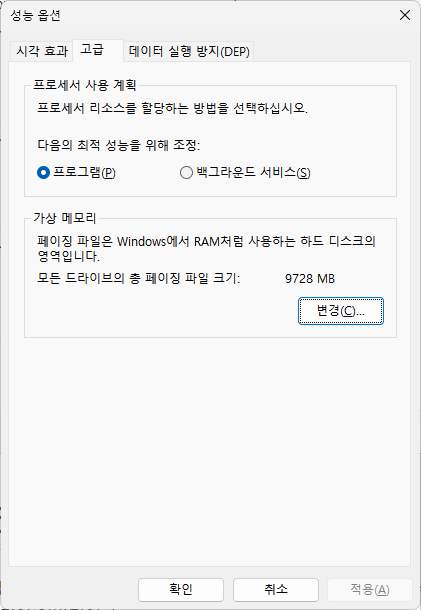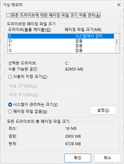 필요한 스왑 파일의 크기는 사용자마다 다르다.