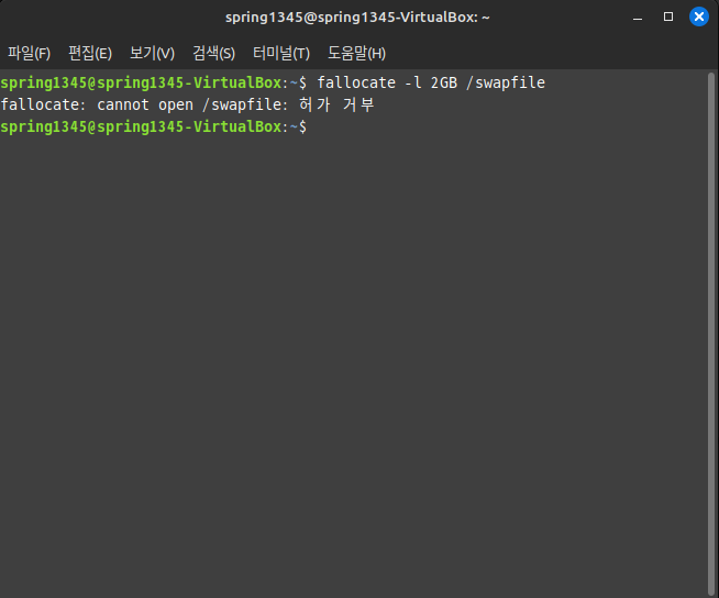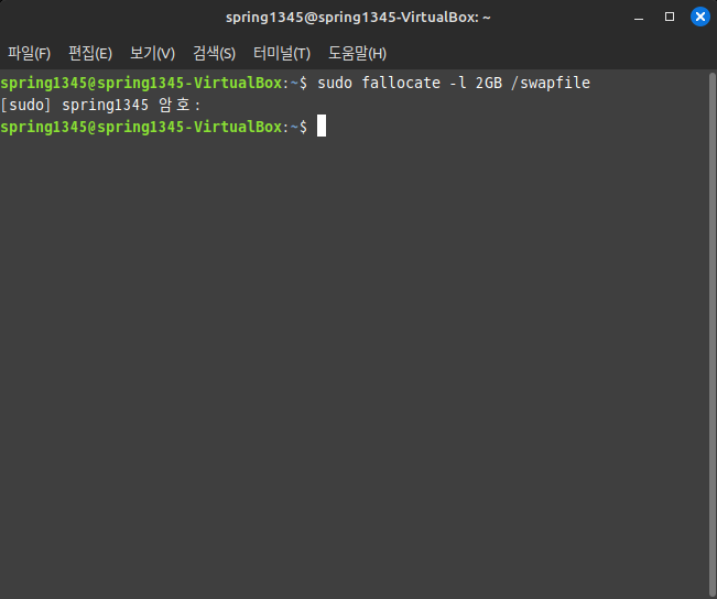 sudo fallocate -l <스왑 파일의 크기> /swapfile