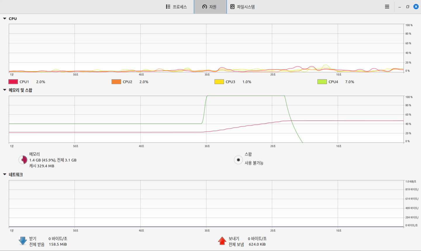 시스템 감시를 열어서 확인하는 경우 다음과 같은 화면이 나타날 것이다.