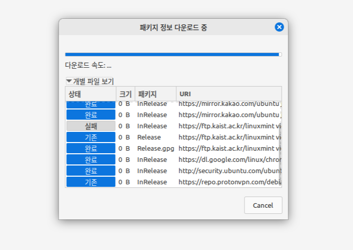 Linux는 미러 서버에서 업데이트 패키지를 받아오는데, 어떠한 이유로 인하여 업데이트가 되지 않는 경우가 있다.