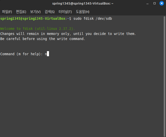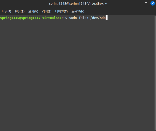 "sudo mkswap /dev/sdb1"을 입력한다.