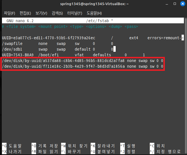 이렇게 스왑 파티션을 생성하면 설정에 따라 컴퓨터 부팅 시 자동으로 스왑 기능이 활성화되지 않는 경우가 있다.