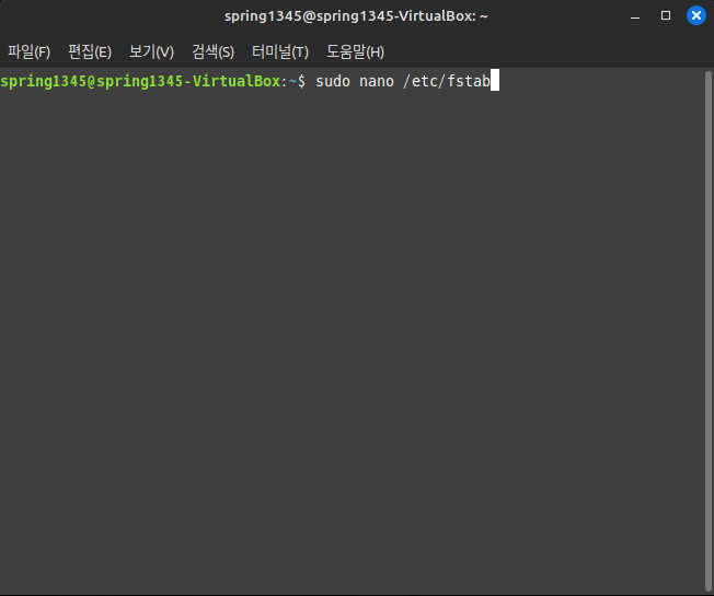/etc/fstab 파일을 에디터로 연 후 항목을 추가하여야 한다.