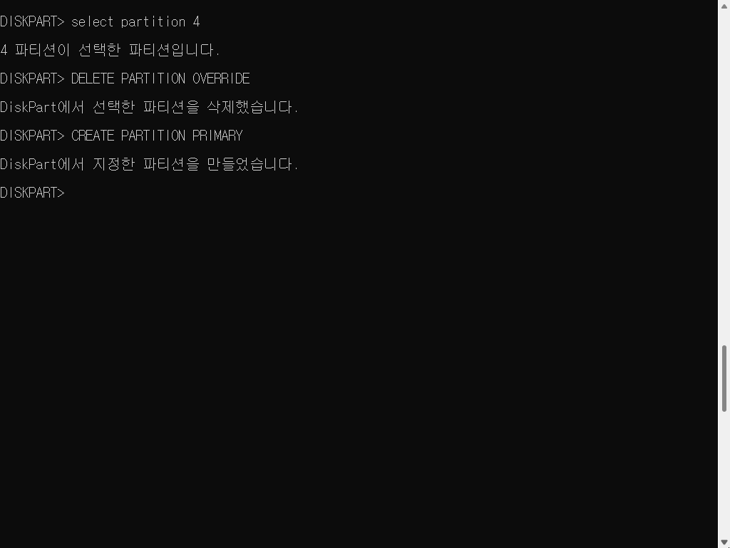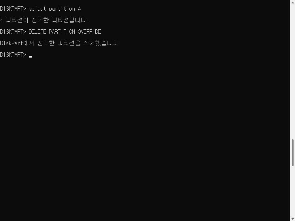 이 명령은 OEM, ESP 또는 복구 파티션에서는 작동하지 않습니다.