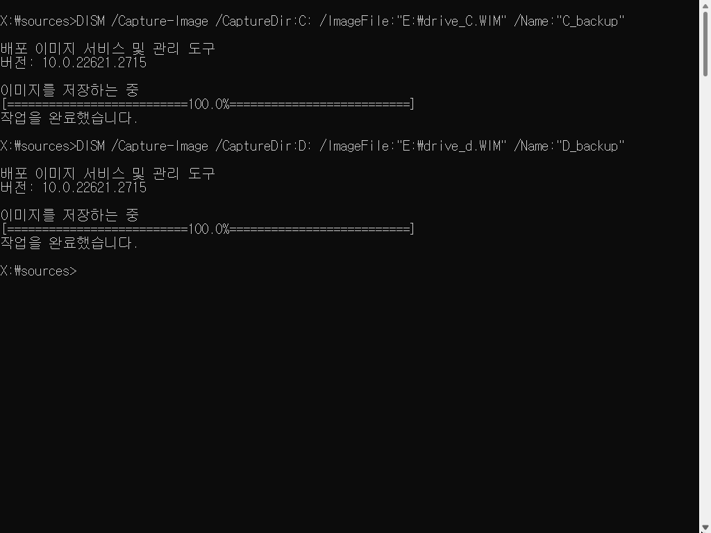 3. DISM을 이용하여 이미지 백업 후 포맷, 이후 백업한 이미지 적용