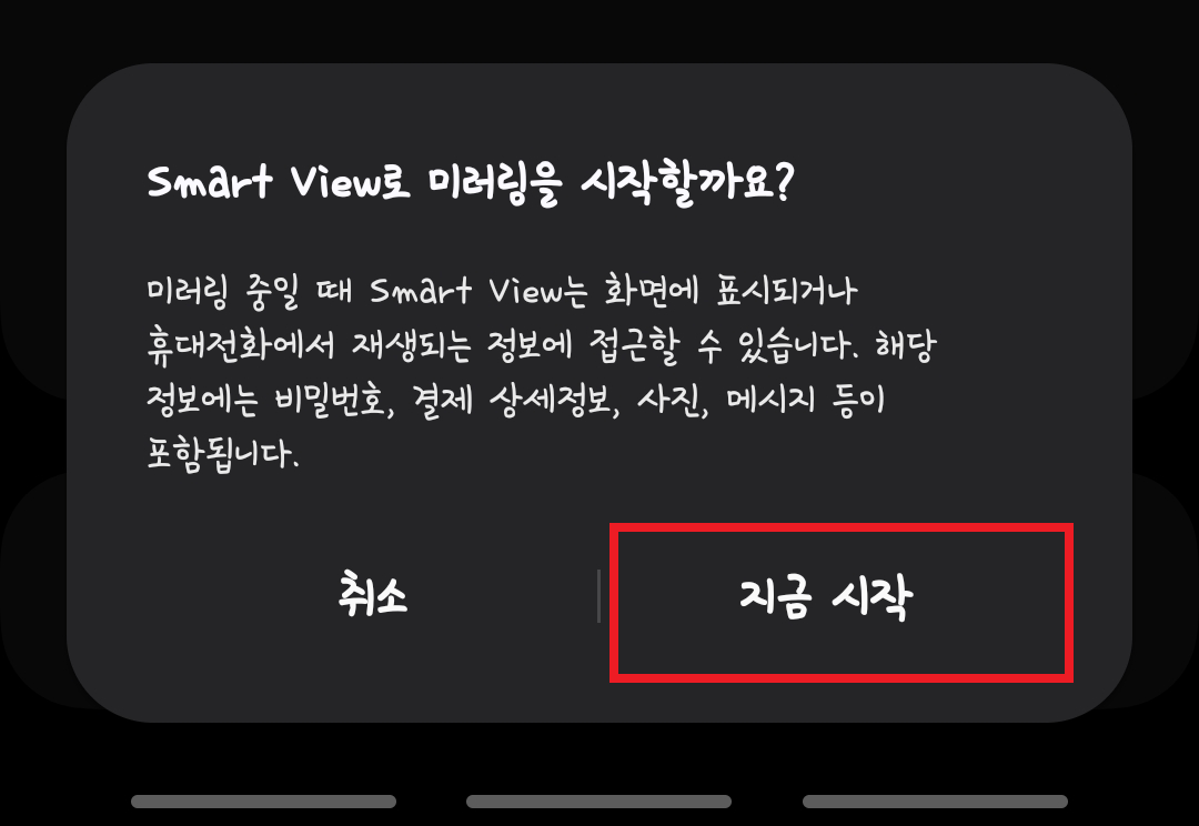 'Smart View 일시정지'를 누르면 화면 전송을 일시정지한다.