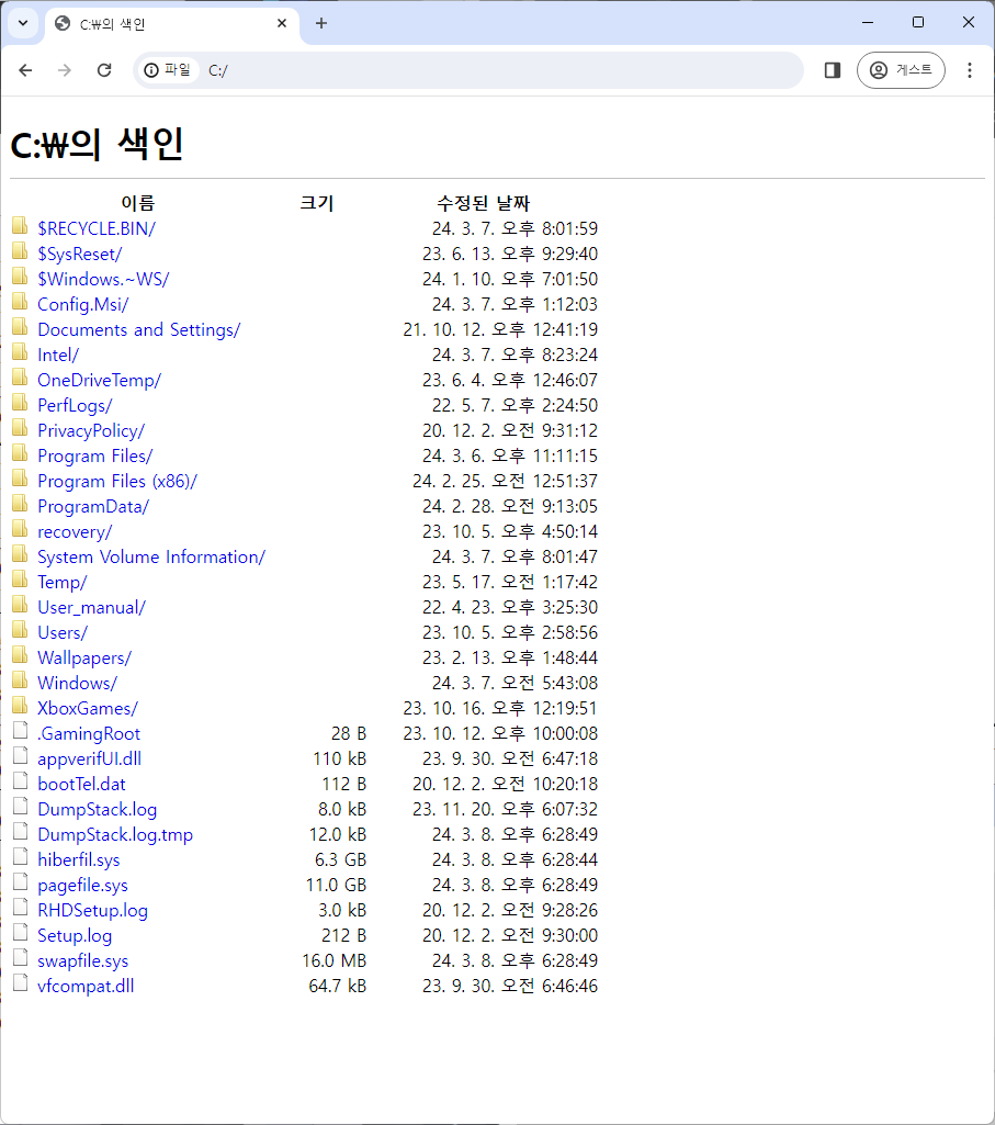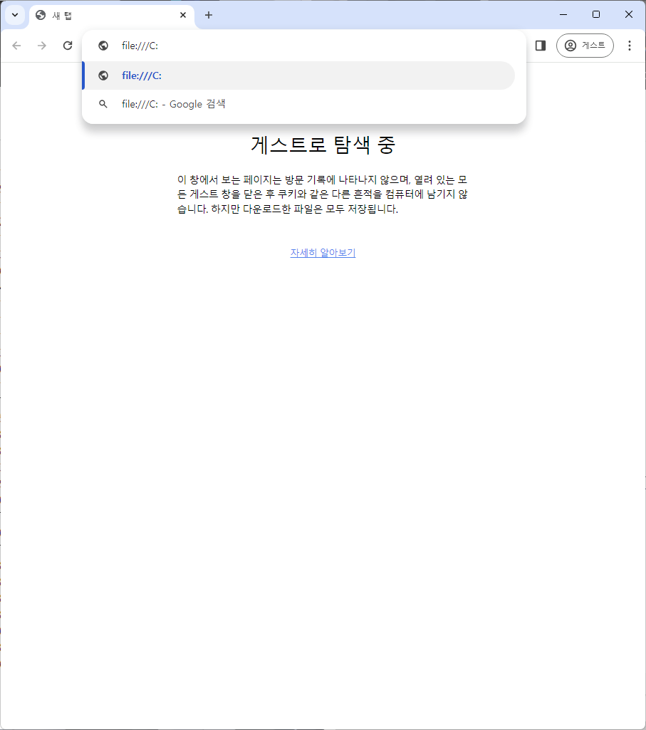 예를 들어 C 드라이브 최상위 경로를 입력하고 싶다면 "File:///C:"를 입력한다.
