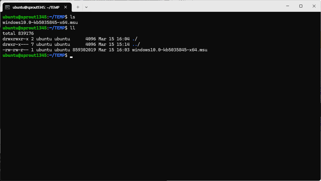 이 명령은 "D:\Documents\Oracle_Cloud\Oracle_Cloud_Ubuntu.key"를 이용하여 로그인 한 로컬 컴퓨터의 "D:\TMP\windows10.0-kb5035845-x64.msu"파일을 원격 컴퓨터의 "/home/ubuntu/TEMP" 디렉터리에 저장한다.