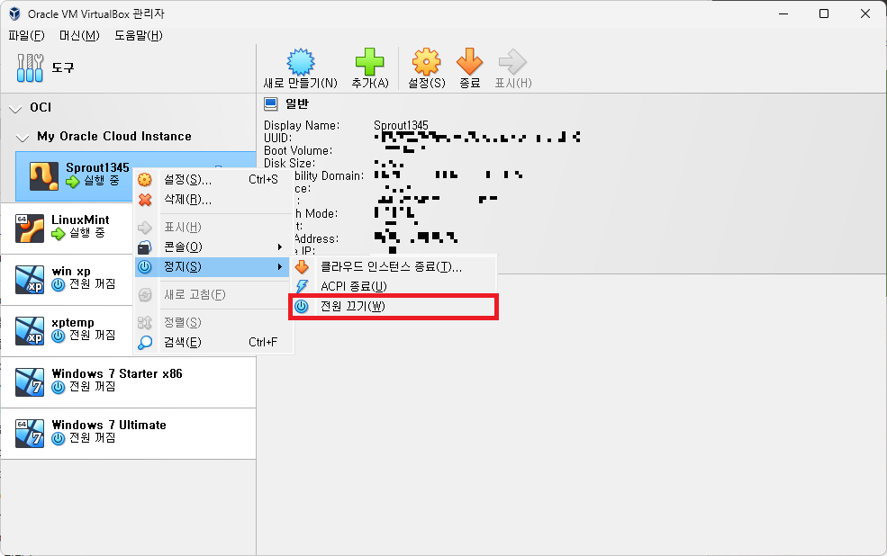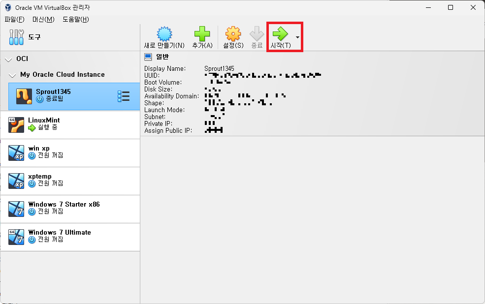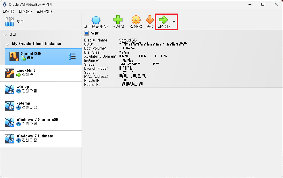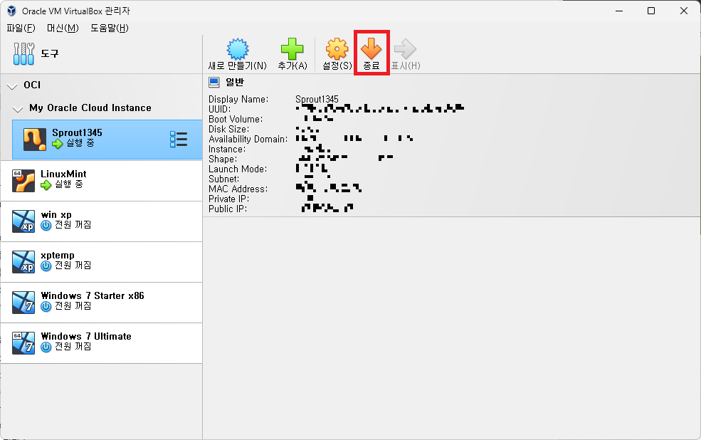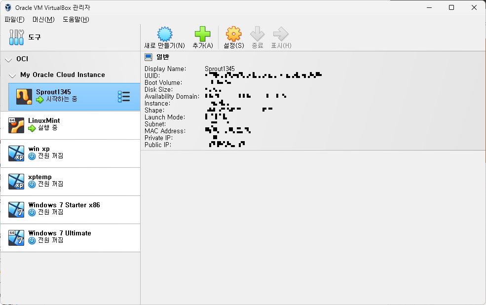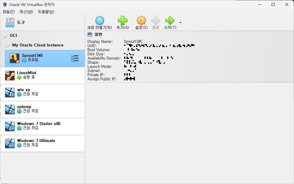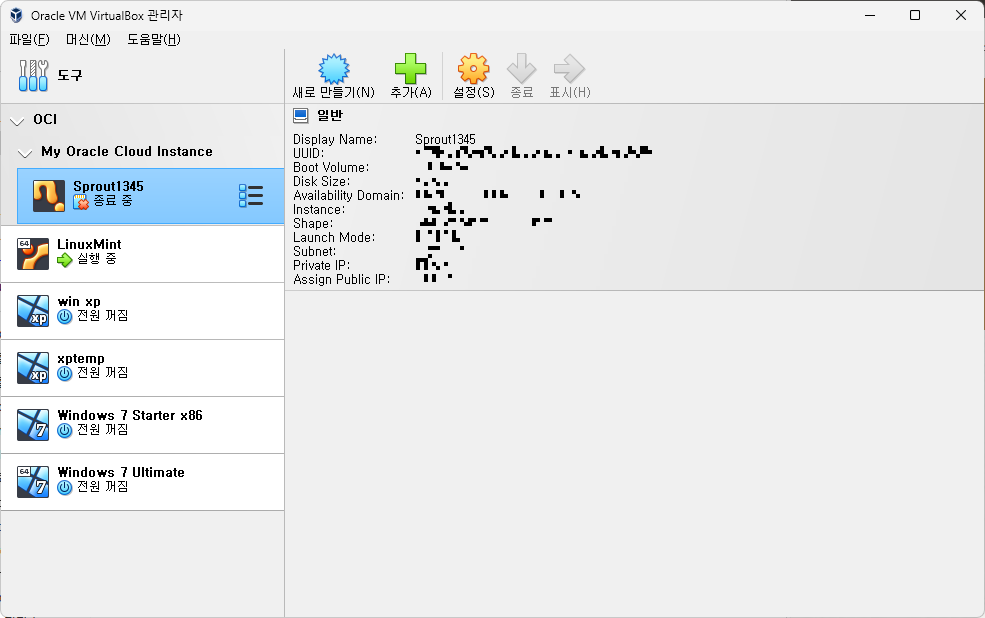 어쨌든, 이 덕분에 Oracle Cloud를 사용할 때마다 웹 브라우저를 열어 Oracle Cloud에 로그인하여 인스턴스를 관리해야 하는 귀찮음 없이, 그냥 바로 VirtualBox를 실행하여 인스턴스를 간단하게 관리할 수 있다.