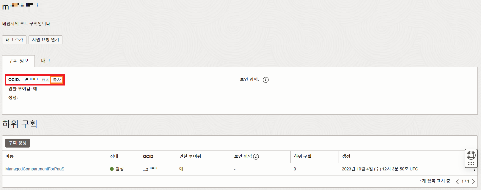 "OCID" 항목을 복사하여