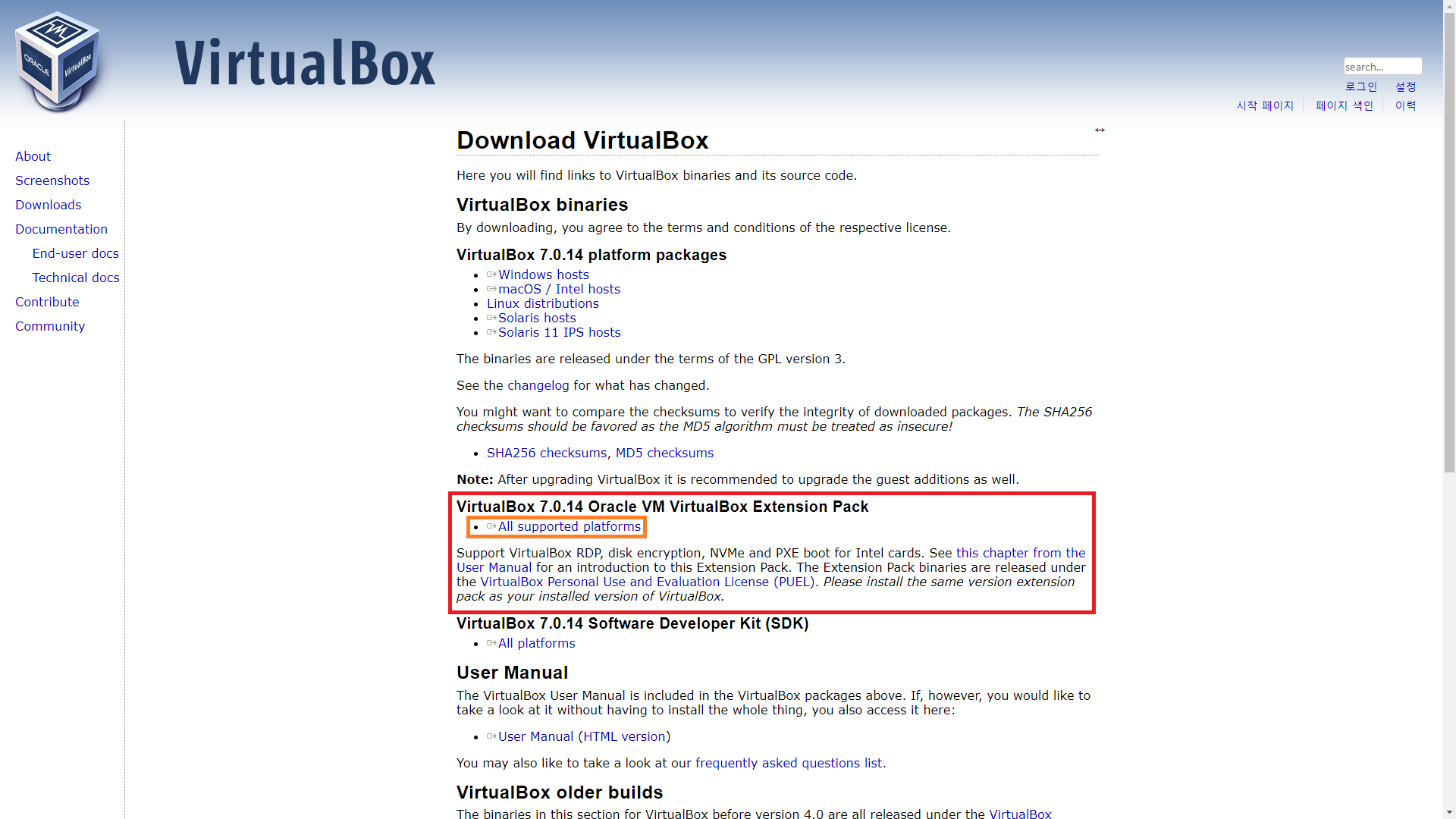 VirtualBox 공식 페이지로 접속한다.