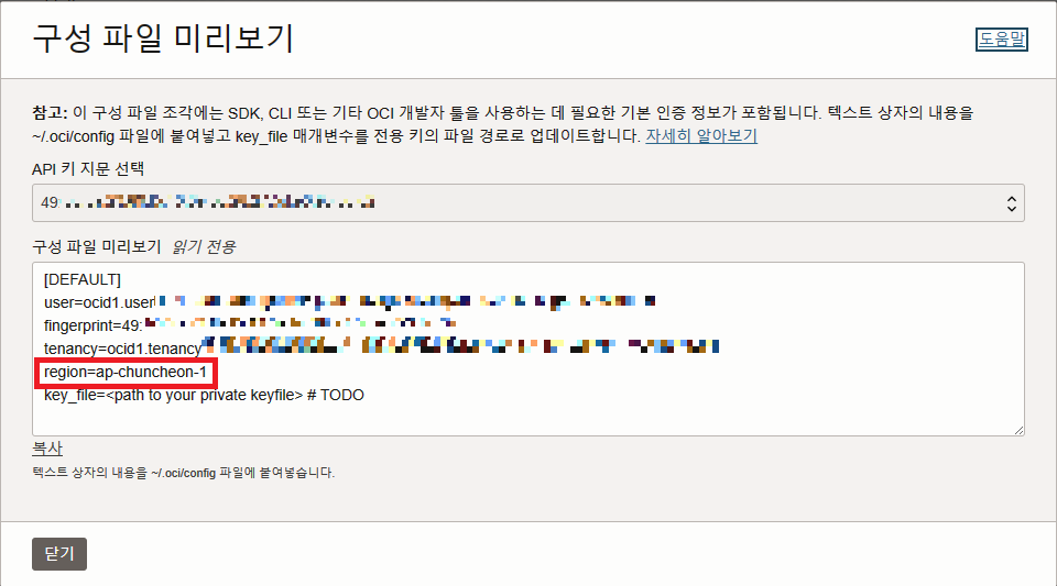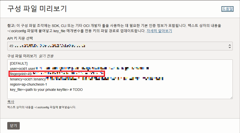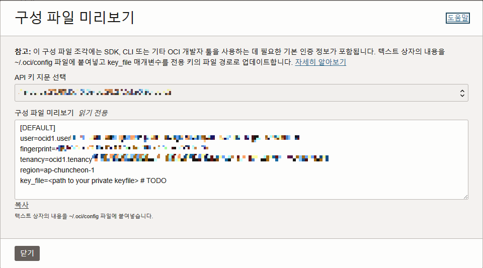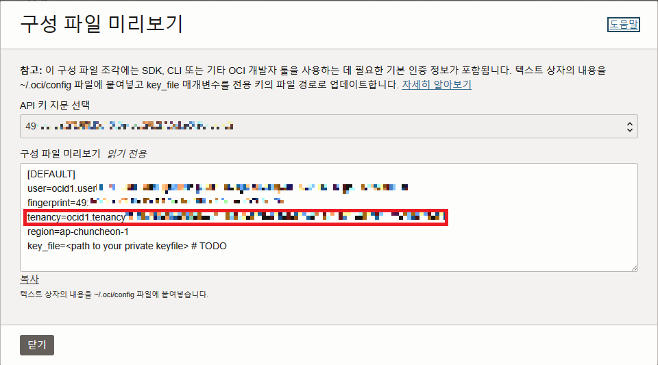 이제 Oracle Cloud에서 해당 정보들을 찾아 저 항목들을 채워 넣어야 한다.